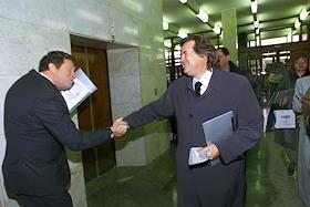 Главный редактор газеты "Коммерсантъ" Андрей Васильев (слева) и руководитель студии "Пилот"…