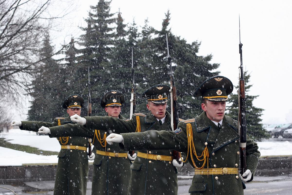 Солдаты роты почетного караула 103 гвардейская отдельная мобильной бригада во время развода линейных.