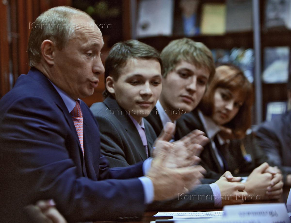 Председатель правительства России Владимир Путин (в центре) на встрече с преподавателями и…