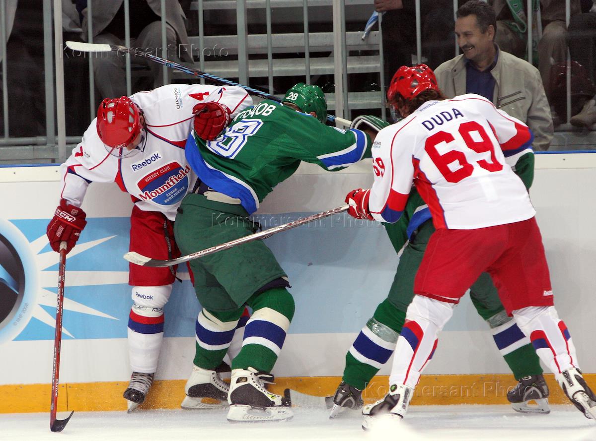 Хоккейный матч между командами "Салават Юлаев" (Уфа)и "Ческе Будеевице" (Чехия). Матч прошел в г. Уфа.