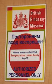 Табличка "Посторонним вход воспрещен!" на двери в посольстве Великобритании.