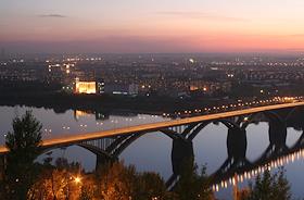 Виды Нижнего Новгорода. Молитовский мост через реку Оку вечером.