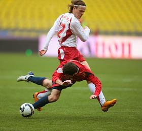 Чемпионат России по футболу. Премьер-лига. Футболисты Алан Дзагоев (слева) и Томислав Дуймович…