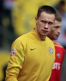 Чемпионат России по футболу. Премьер-лига. Вратарь Сергей Нарубин во время матча между командами…