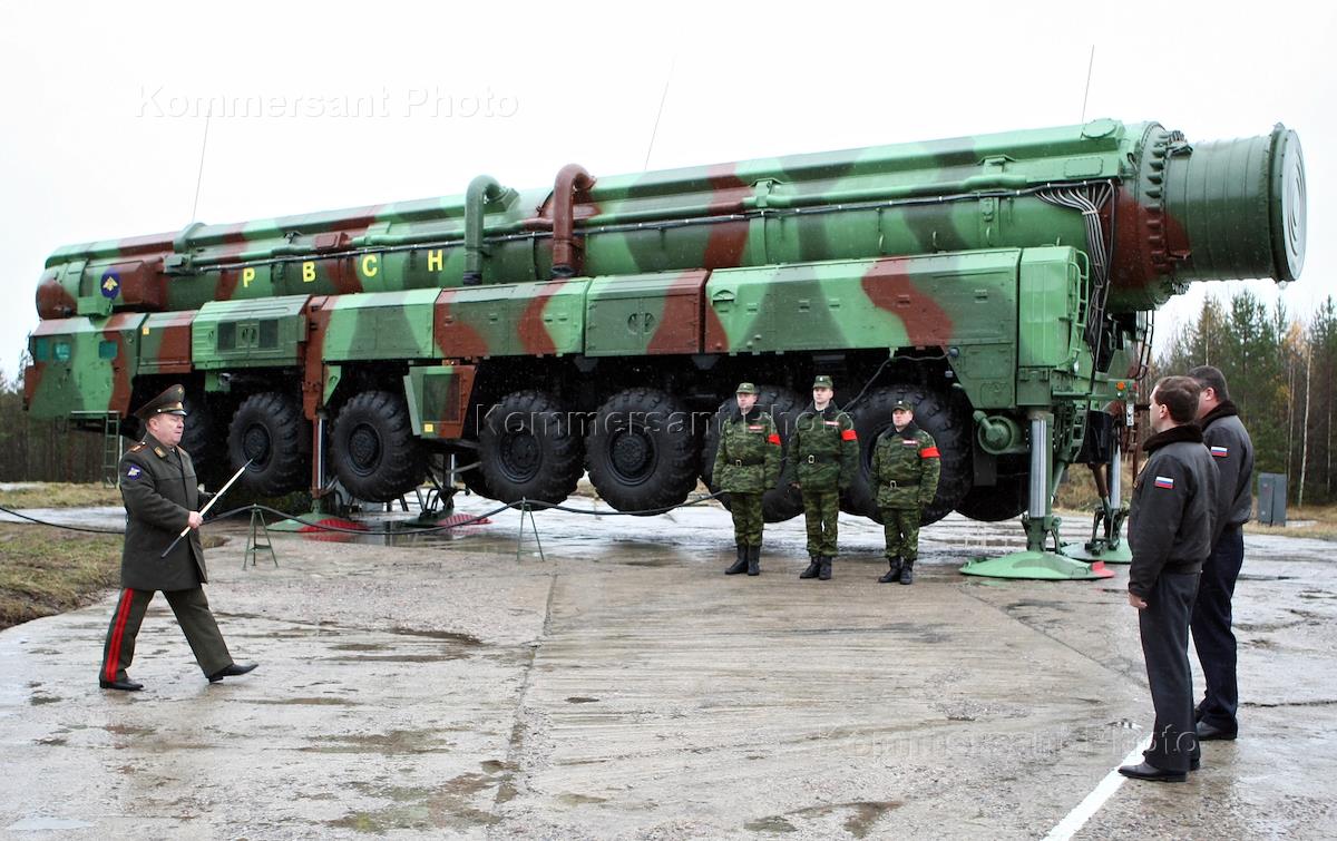 President of Russia Dmitry Medvedev (left) and Commander of Strategic Rocket Forces, Colonel-General…