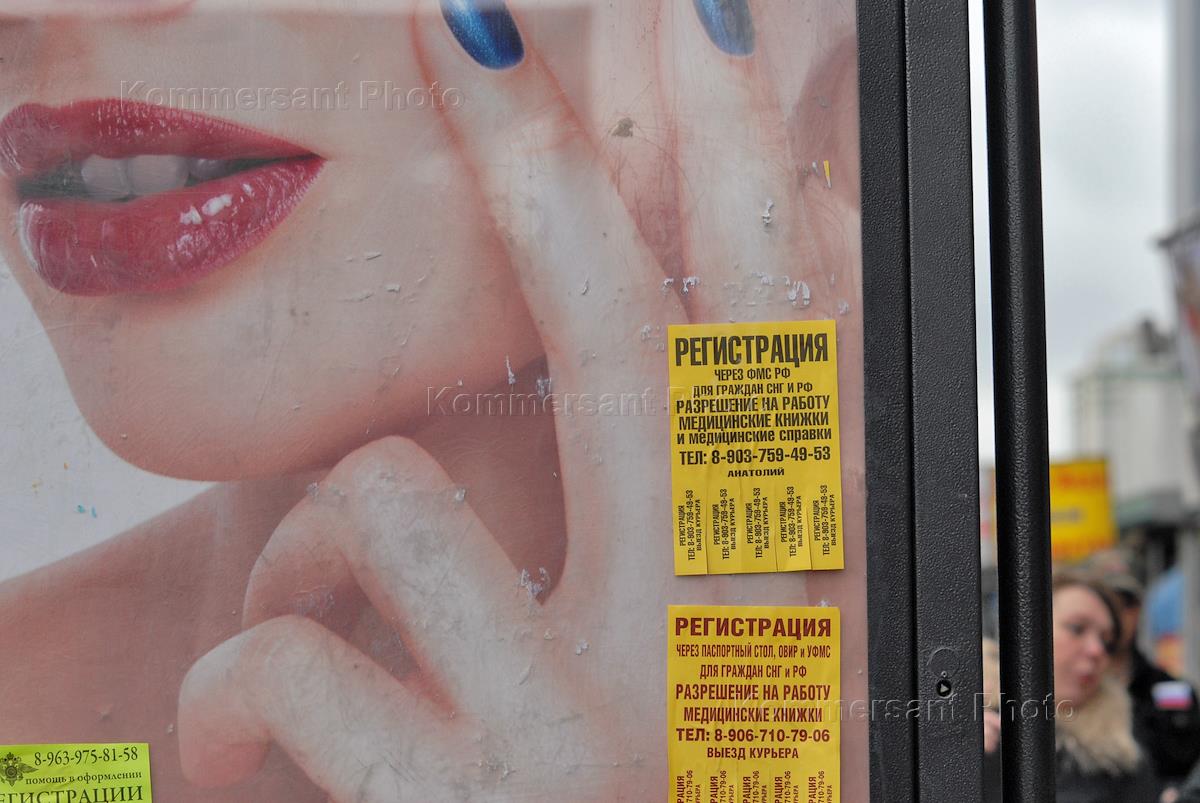Объявления о предоставлении услуг регистрации граждан СНГ и оформления разрешения на работу.