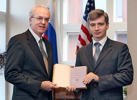 Церемония передачи России редкой книги-каталога из библиотеки императора Александра III в посольстве США.