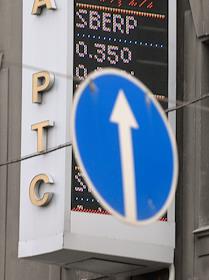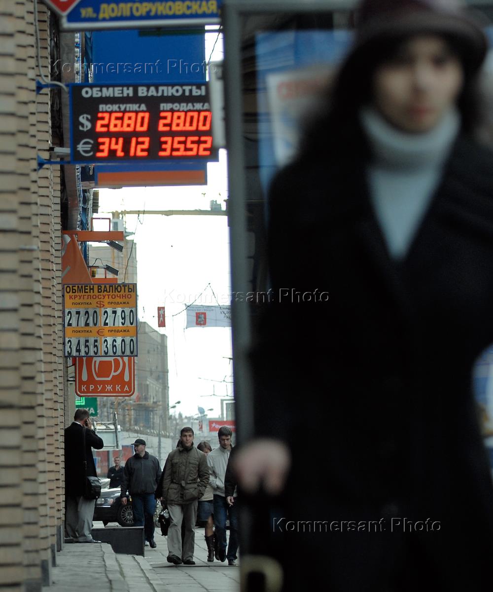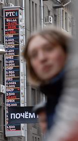 Электронное информационное табло на здании Фондовой биржи Российская Торговая Система (РТС) на улице…