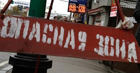 Курс валюты на информационном табло пункта обмена валюты и ограждение "опасная зона".