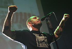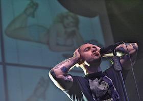 Солист группы "Ляпис Трубецкой" Сергей Михалок во время концерта группы в клубе "Б1 Maximum".