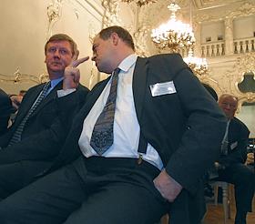 Председатель правления РАО "ЕЭС России" Анатолий Чубайс (слева) и министр по антимонопольной…