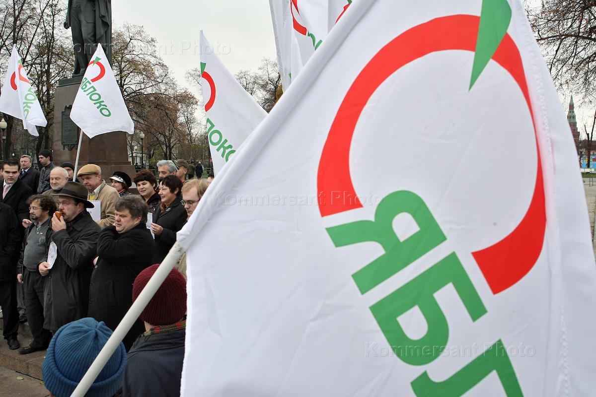 Председатель Российской объединенной демократической партии "Яблоко" Сергей Митрохин (в центре) и…