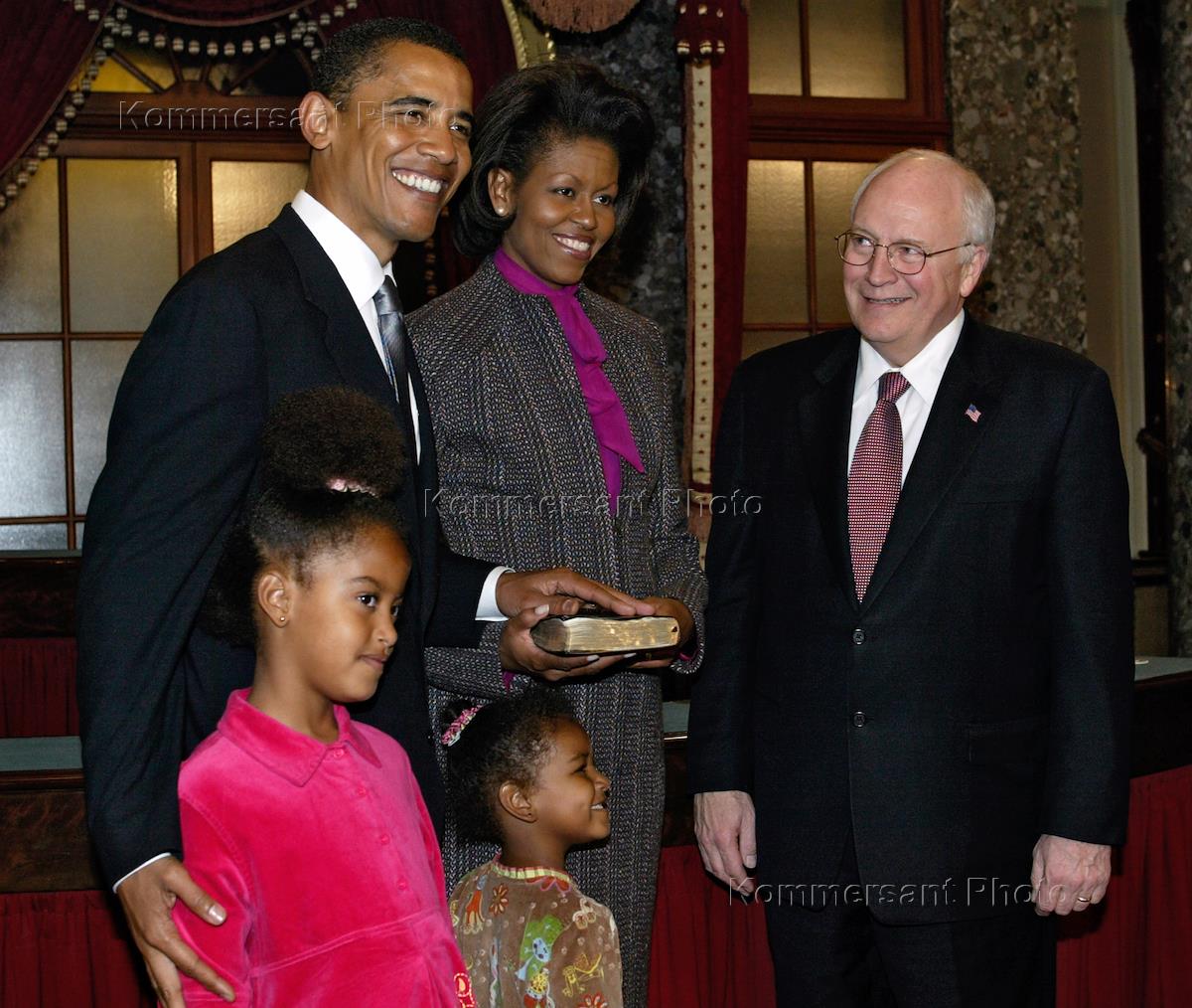 Кандидат в президенты США от Демократической партии сенатор Барак Обама (слева) с супругой Мишель (в…