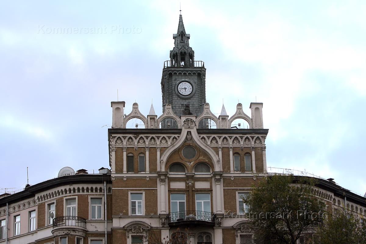 Часы на доме страхового общества "Россия" на Сретенском бульвар дом 6 стр 1 и 6 стр 2