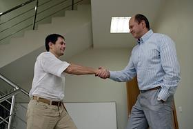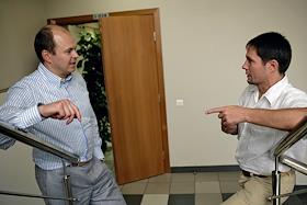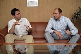 Экономика и бизнес Дмитрий Молчанов, генеральный директор агентства по недвижимости "Домострой". Максим Ткачев, управляющий директор "News Outdoor Group" , в офисе компании "News Outdoor".