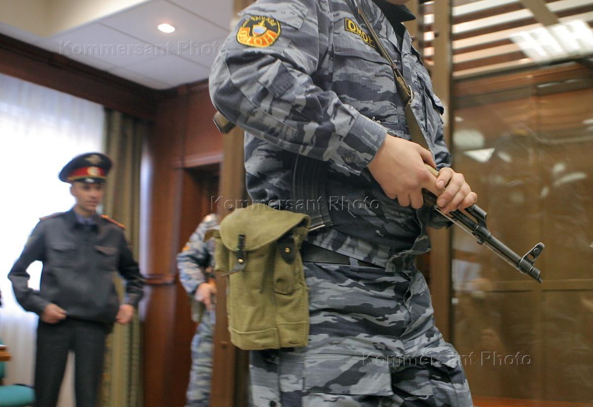 Сотрудники правоохранительных органов, сопровождающие подозреваемых в зал заседаний Московского…