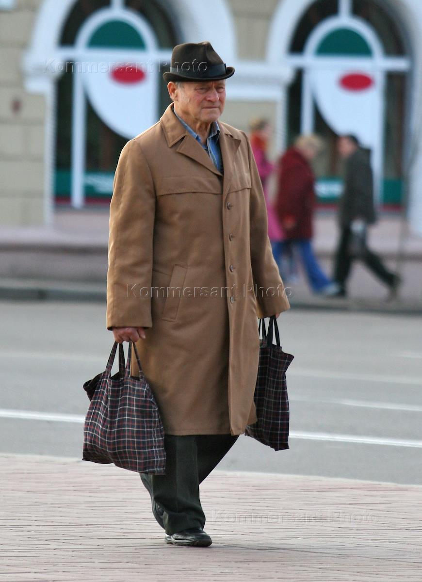 Жанровая фотография. Пожилой мужчина с сумками на улице.