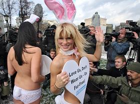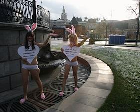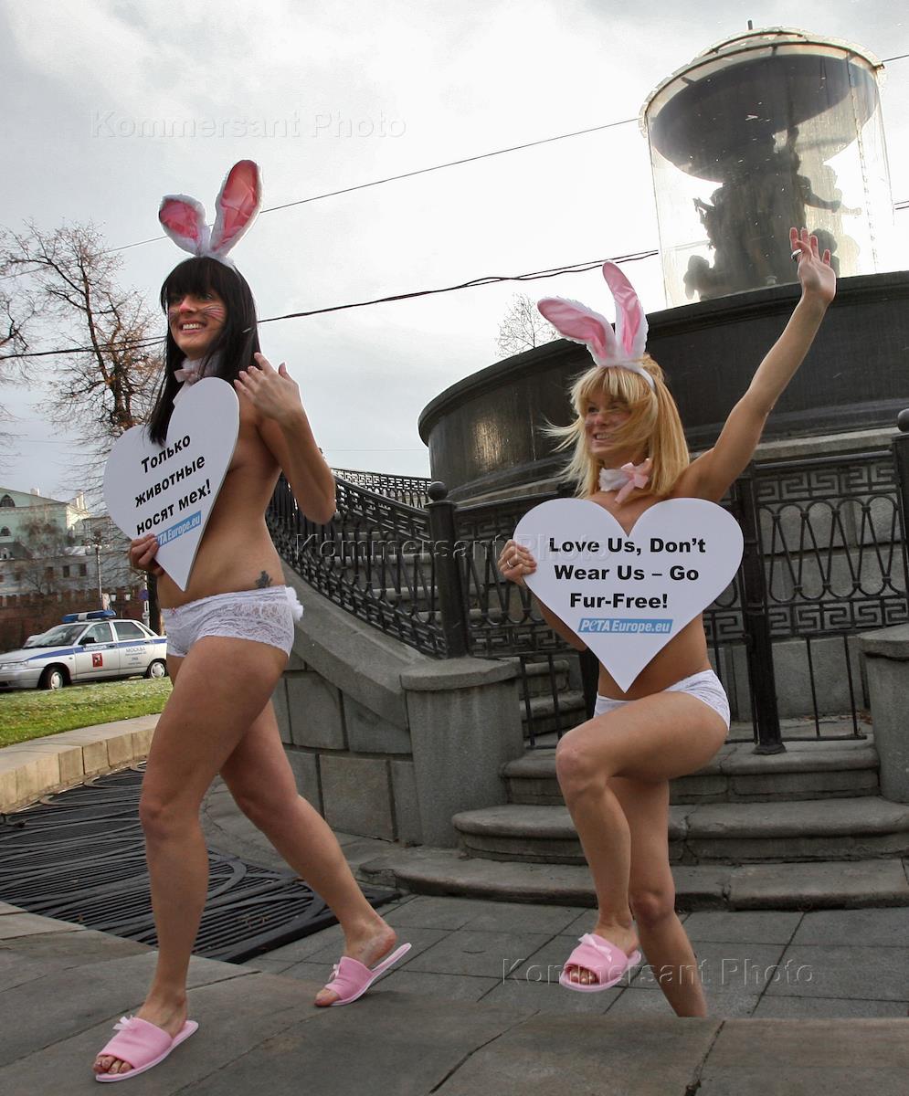 Акция организации защиты животных "Пета" в поддержку этичного обращения с кроликами.