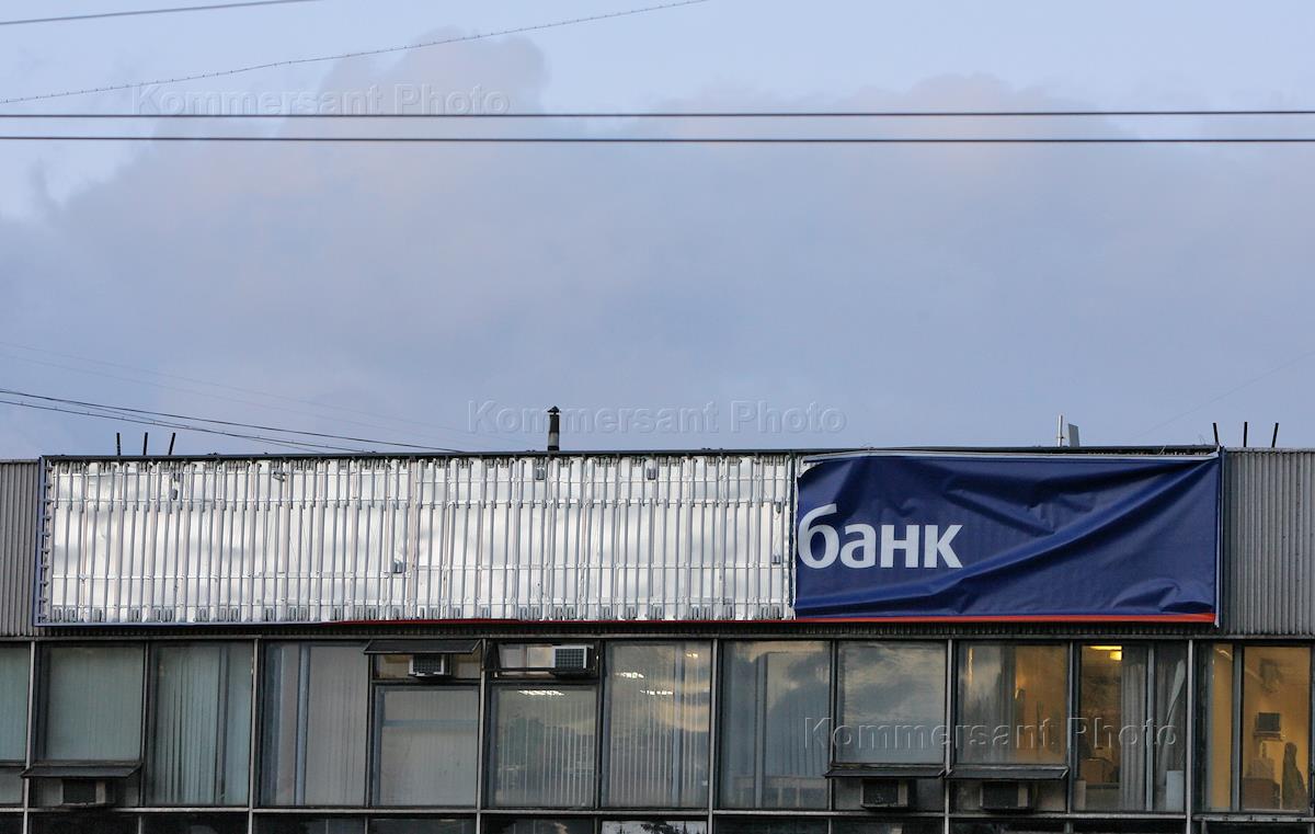 Жанровая фотография. Вывеска над офисом банка.