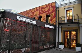 Вывеска монобрендового бара-магазина DENIS SIMACHЁV и вход в бутик Burberry/