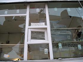 Жанровая фотография. Разбитая торговая палатка в Ермолаевском переулке.