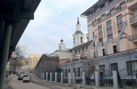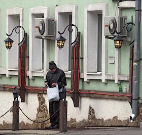 Виды Москвы. Пожилой человек стоит на улице Плющихе.