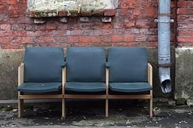 Жанровая фотография. Старые кресла из Дома культуры во дворе жилого на улице Плющихе.