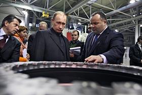 Председатель правительства России Владимир Путин (слева)и генеральный директор НПО "Сатурн" Юрий…