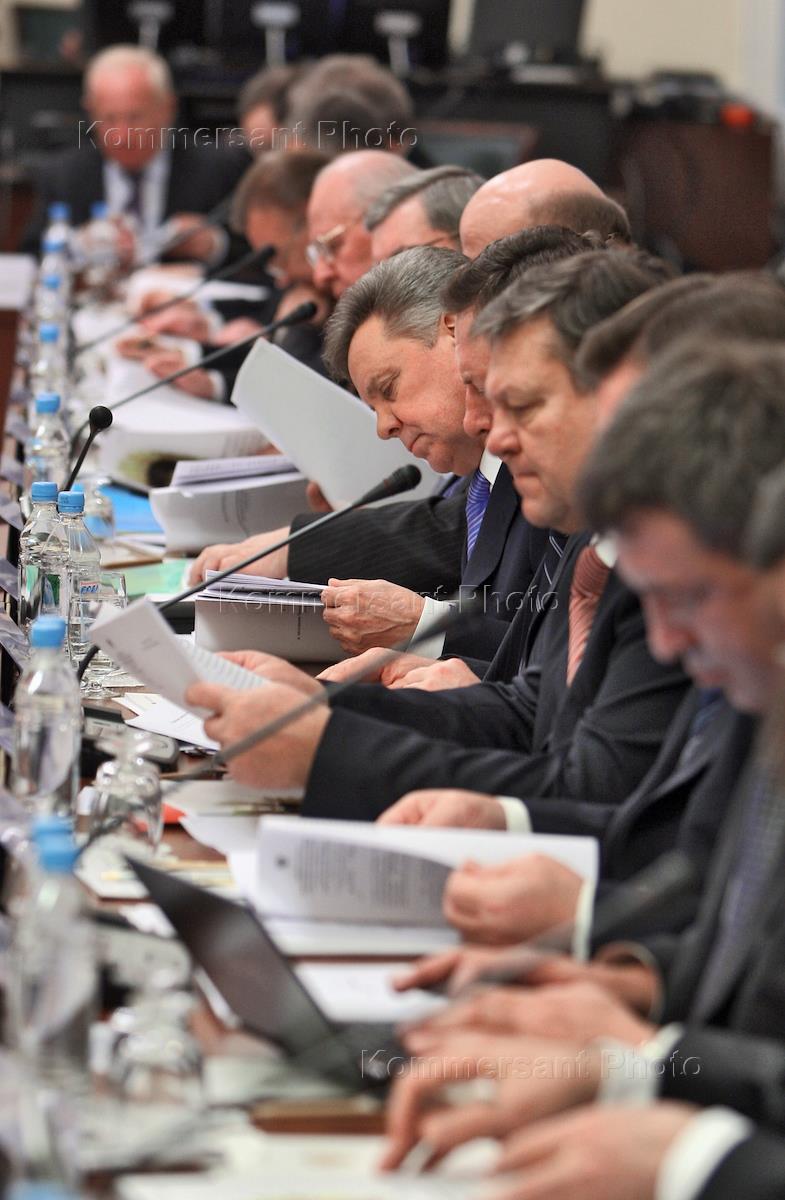 Жанровая фотография. Члены правительства России во время совещания.
