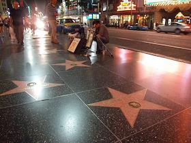 Жанровая фотография. Уличный художник на бульваре в Голливуде.