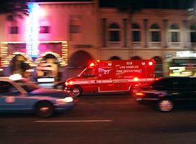 Жанровая фотография. Автомобиль пожарной службы на улице Голливуда.
