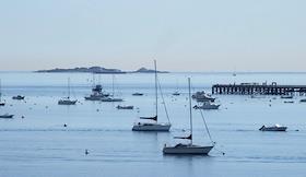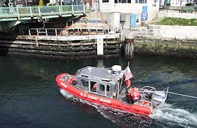 Виды города Глостера. Катер службы береговой охраны США в бухте Глостера.