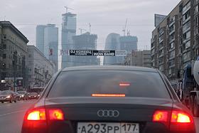 Виды Москвы. Автомобиль на Кутузовском проспекте. Московский международный деловой центр (ММДЦ)…