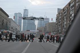 Виды Москвы. Пешеходы на переходе улицы Дорогомиловской. Московский международный деловой центр…