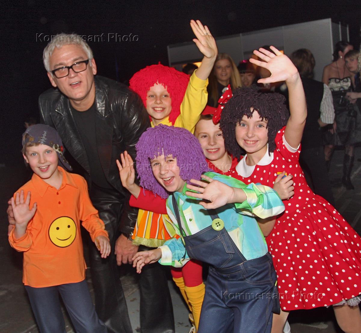 Слева направо: певцы Валерий Меладзе и дуэт "Потап и Настя" на съемках концерта "Песня года - 2008"…