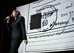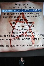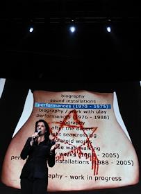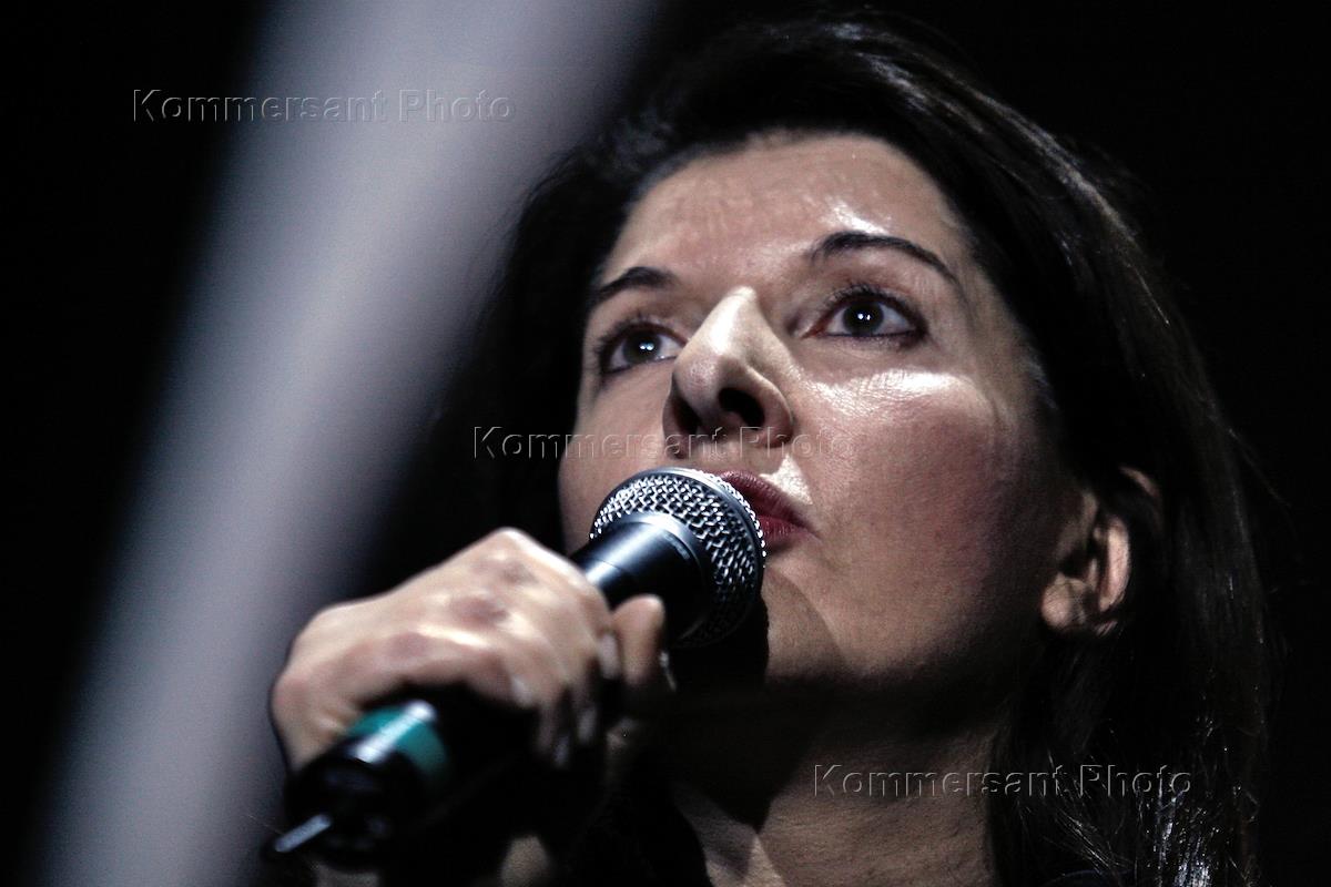 Сербская художница Марина Абрамович во время своей лекции.
