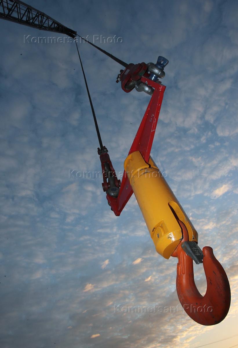 Рабочая техника на территории предприятия "Курганстальмост". Мужчина курит, стоя у подъемного крана.