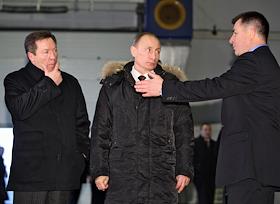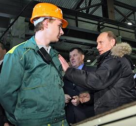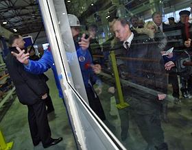 Председатель правительства России Владимир Путин (в центре) во время посещения ООО "Завод…