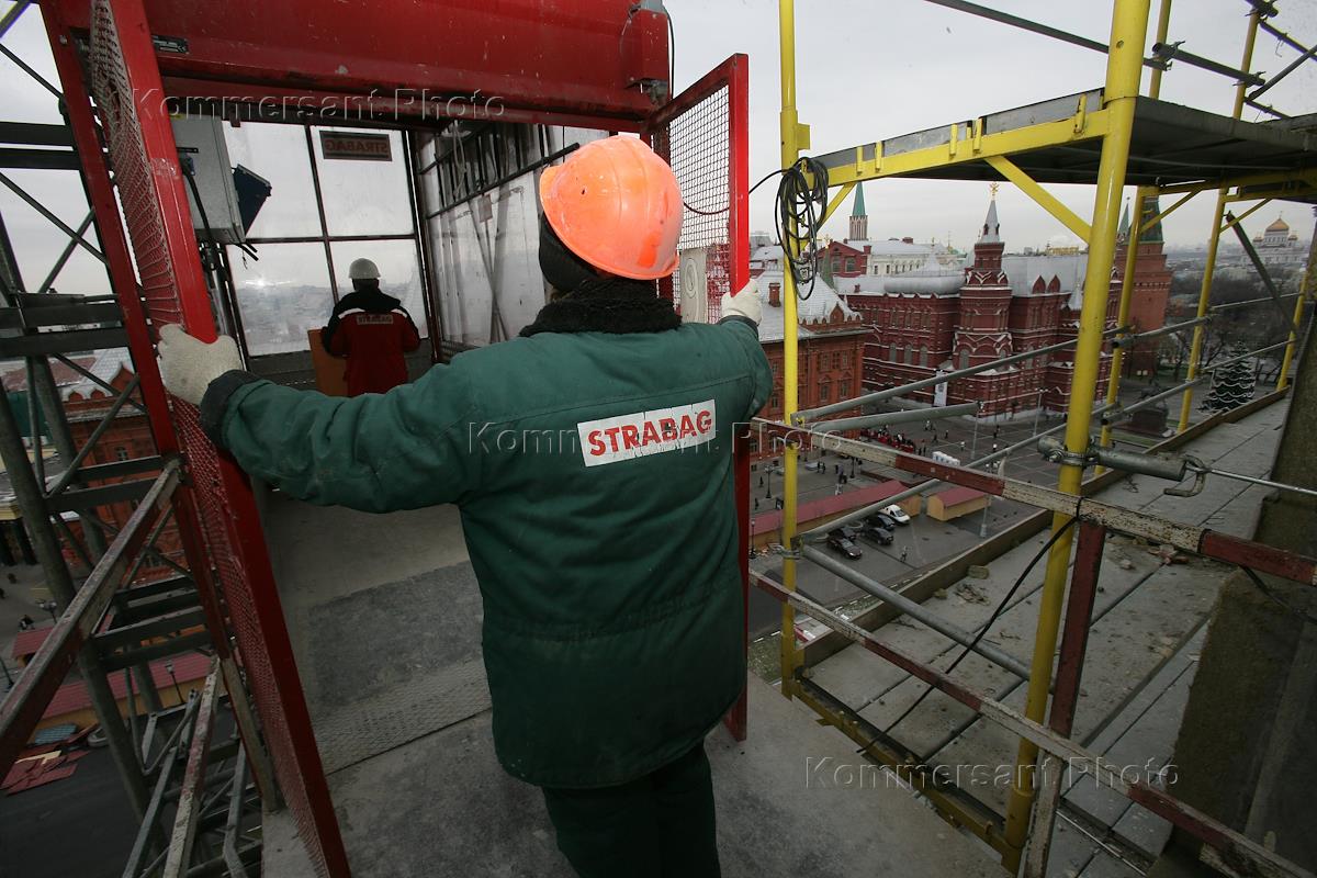 Строительные работы на площадке гостиницы "Москва". Генеральный подрядчик по строительству - ЗАО "ШТРАБАГ" (STRABAG).