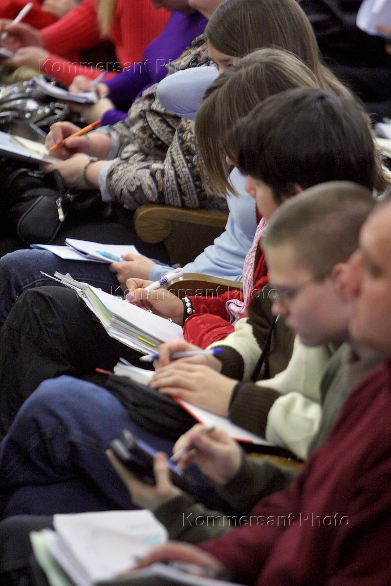 Образование День открытых дверей Московского государственного университета им. М. В. Ломоносова (МГУ), в Актовом зале Главного здания на Воробьевых горах.