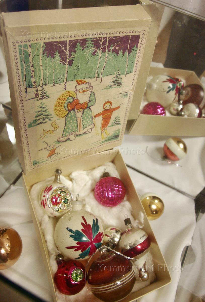 Выставка старых советских ёлочных украшений.