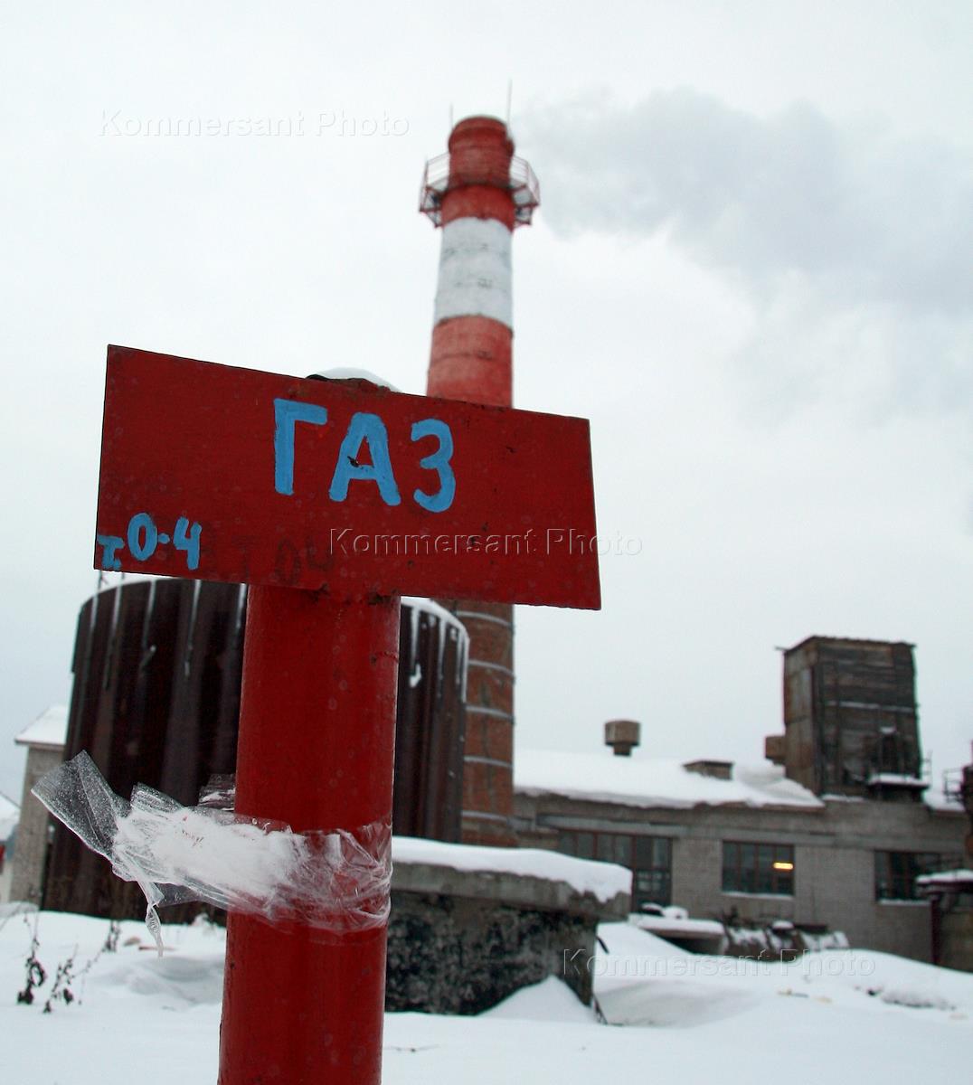 Жанровая фотография. Здание котельной и табличка с надписью "Газ".