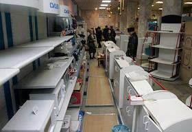 Полупустые полки одного из магазинов бытовой техники