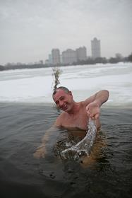 Глава группы компании "Гориславцев и Ко" Константин Гориславцев во время купания в прорубе…