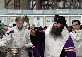 Молебен о преодолении кризиса заводом и окропление святой водой производства ОАО "Нижегородский машиностроительный завод".