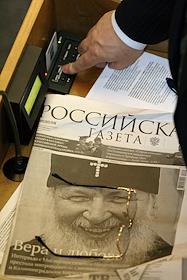 Члены Государственной думы России просматривают газеты перед началом очередного заседания.