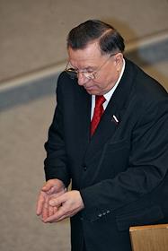 Жанровая фотография. Член Государственной думы России голосует во время очередного заседания Госдумы.