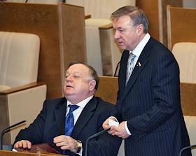 Председатель комитета Государственной думы России по обороне Виктор Заварзин (слева) на заседании…