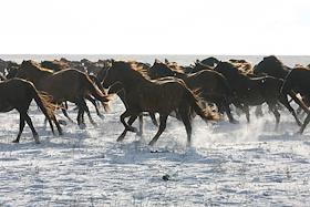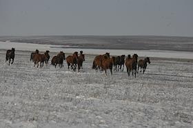 Жанровая фотография. Табун диких лошадей на острове в районе озера Маныч-Гудило в Орловском районе.