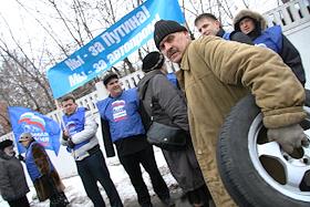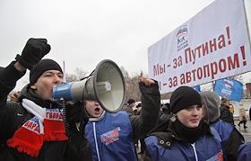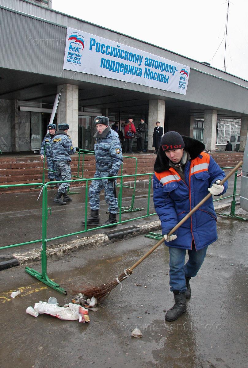 Экономика и бизнес Акция организованная московским отделением партии "Единая Россия" по поддержке решений правительства РФ в защиту отечественного автопрома под девизом: "Поддержим Россию - поддержим себя!", у корпуса заводоуправления АМО "ЗИЛ".